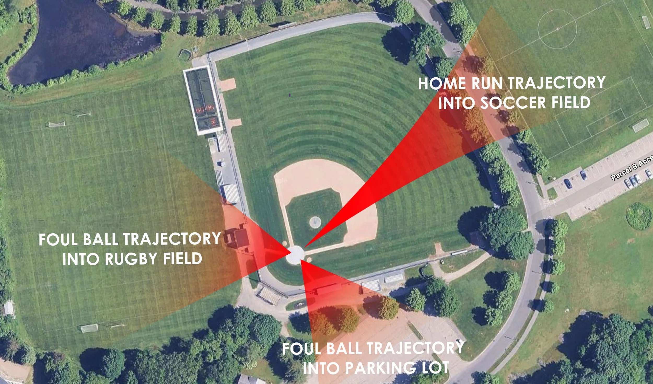 Under these conditions, foul and home run balls can enter active athletic environments, exposing athletes, students, and families to risk while they are engaged in unrelated activities.